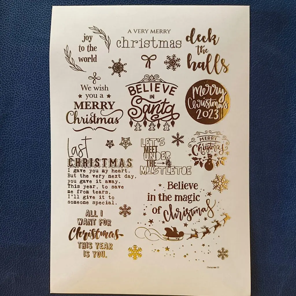 Christmas Coaster Making Gold Embossed Sticker Sheet | Foil Stickers for Resin Art, DIY Crafts