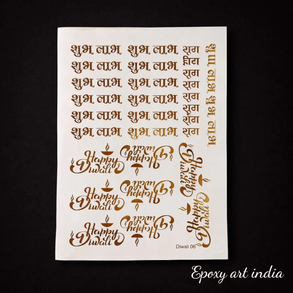 Subh Labh Diwali Embossed Gold Sticker Sheet for Resin Art (Size A5)
