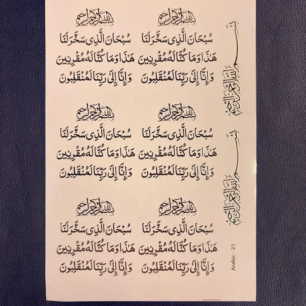 Travel Dua Arabic Sticker – Embossed Gold Islamic Calligraphy Sticker for Car, Luggage, Resin Art