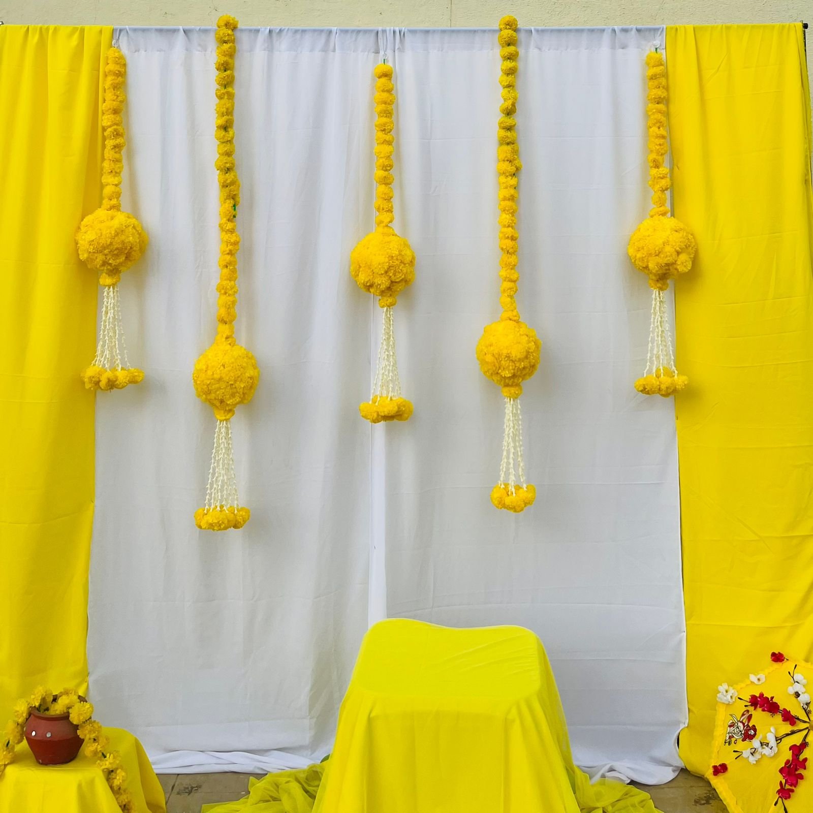 Artificial Marigold Floral Ball Hangings Backdrop Set